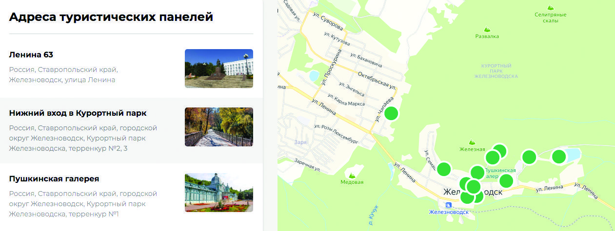 •Полная информация о городе и туристических объектах в формате гибридной карты, карточек объектов, QR кодов